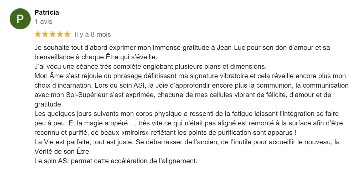 C’est une expansion de conscience que vit Jean en utilisant des clefs de passage qui lui sont propres ; il change d’état en 10/15 secondes, sa conscience s’expanse et embrasse tout l’espace ainsi que les consciences des personnes présentes.